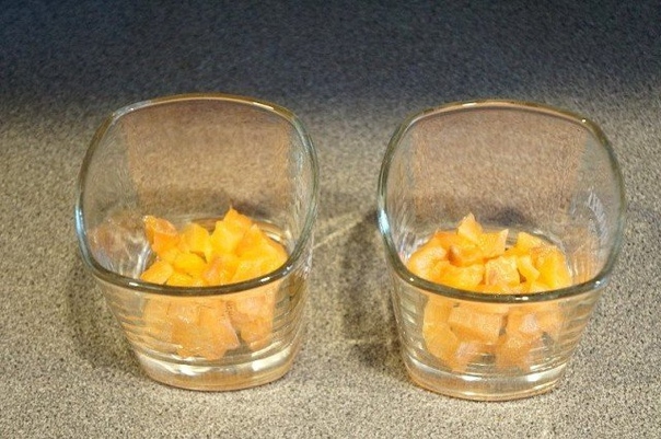 1. Красную рыбу порезать небольшими кусочками, выложить в стаканы или креманки.