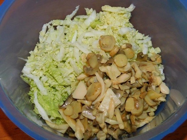 Полезный и вкусный Салатик с грибами, сыром и пекинской капустой