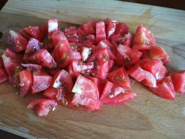 1. Для приготовления икры из баклажанов выбрать крепкие овощи без повреждений. Вымыть их и обсушить. Баклажаны мелко нарезать. Перец нарезать мелкой короткой соломкой. Измельчить помидоры.