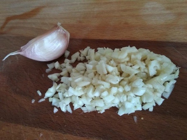 4. Мелко нарезать или пропустить через пресс чеснок, добавить к овощам. Ещё 2-3 минуты подержать на огне.