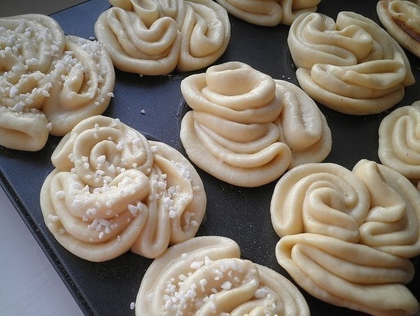 Даем расстояться примерно 30-40 минут. Затем смазываем булочки яично-молочной смесью или посыпаем гранулированным сахаром: