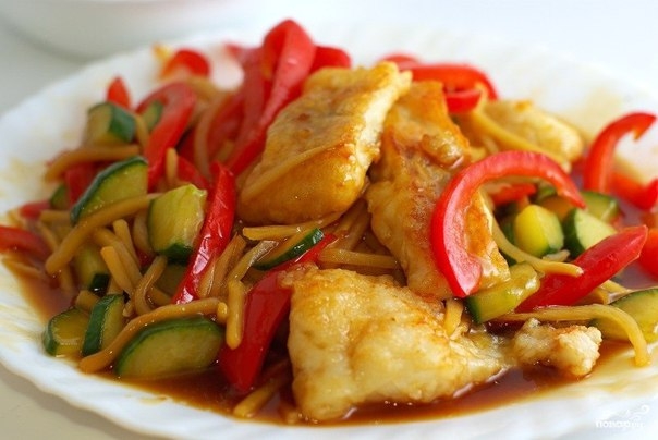 Жареная рыба с овощами