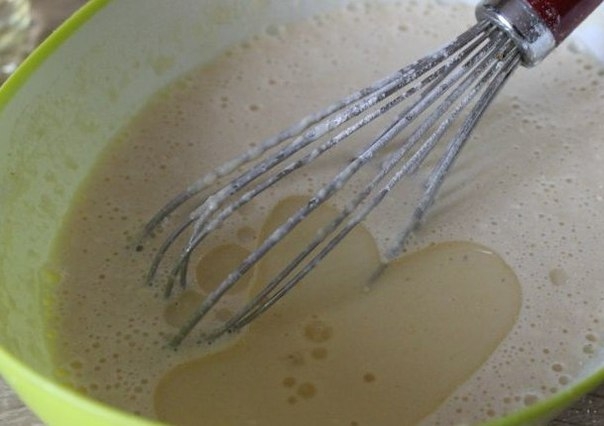 Налить тесто, выпекать блины с двух сторон, на среднем огне.