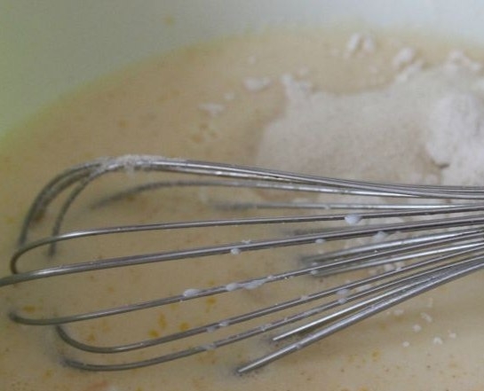 Затем манку и муку. Перемешать. Накрыть. Оставить на 20 минут.