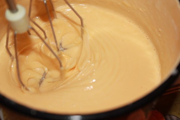 Размягченное масло взбейте миксером до пышности. Яичную смесь после остывания ещё раз хорошо взбейте, и добавьте сливочное масло.
