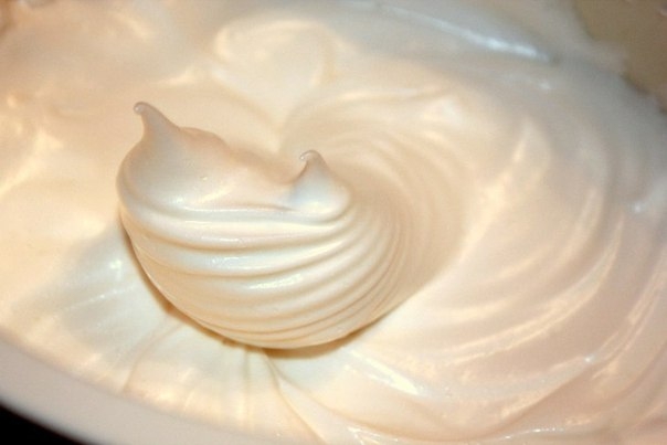 Желатин залейте холодной водой на 15 мин., затем прогрейте на водяной бане или минимальном огне, помешивая, до растворения. Взбейте белки. Во взбитые белки быстро влейте желатин тонкой струйкой при постоянном помешивании. Горячий желатин вливайте медленно, взбивать до полного охлаждения (скорость миксера максимальная. И только после того , как остынет масса, скорость взбивания минимальная).