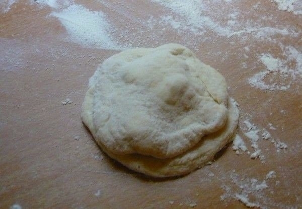 Обминаем их в муке и слегка раскатываем скалкой. Кусочков должно быть четное количество.