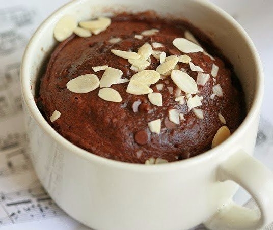 Вылить смесь в смазанную маслом кружку и поставить в микроволновку на самый высокий режим примерно на 90 секунд. Подавать к столу можно с шариком ванильного мороженого.