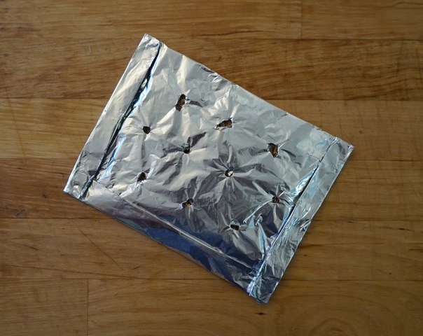 Врубаем огонь на всю катушку и как только дым полезет из под крышки, обинаем фольгу вокруг нее и засекаем 10 минут.