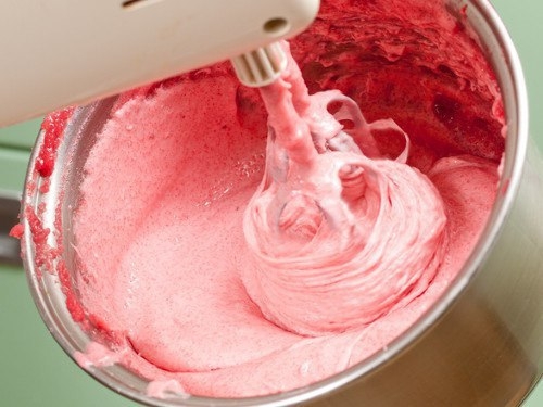 Полученную ягодно-манную массу охладить примерно до 30 градусов С. Если нужно приготовить десерт быстро, поставьте кастрюлю на холодную водяную баню. Если есть время, дайте массе остыть естественным образом. Взбивать – начиная с небольших оборотов миксера и постепенно увеличивать скорость. Чем дольше вы будете взбивать мусс, тем воздушнее получится ваша «манна небесная» – пышнее, светлее и, в конце концов – вкуснее.