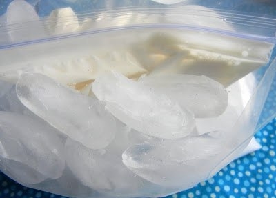 Промой пакет с мороженым под холодной водой, чтобы смыть остатки соли.