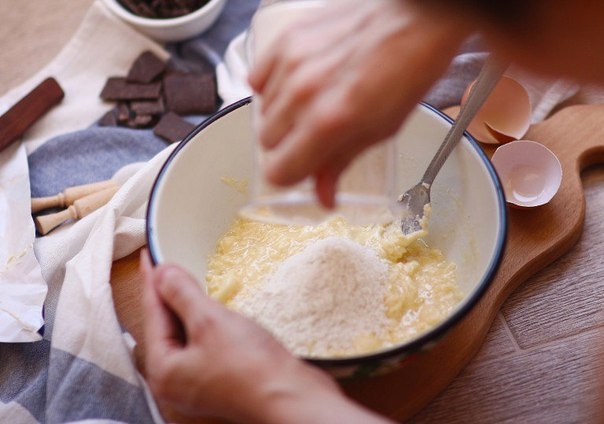 3. Всыпать муку и замесить вязкое тесто.