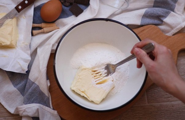 1. Размягченное сливочное масло перемешать с сахарной пудрой до однородной массы.