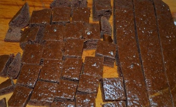 4. Который без добавок корж порезать кубиками.
