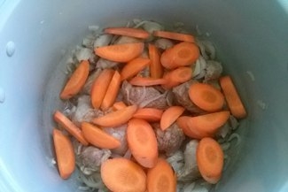 Далее добавьте в чашу мультиварки морковь, прежде порежьте её толстыми кружочками.