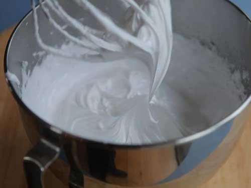 Отделяем белки от желтков и взбиваем их. Далее добавляем 1 столовую ложку сахара и лимонную кислоту, продолжая непрерывно взбивать. Когда сироп достиг нужной температуры мы снимаем его с огня и маленькой струйкой добавляем к взбивающимся белкам, все время взбивая.