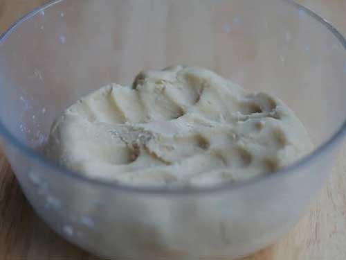 Добавляем пол ложки майонеза, соду погашенную уксусом и 2 стакана муки.