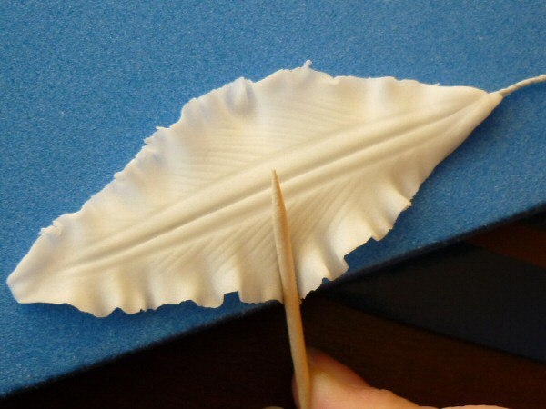 Палочкой на лепестках рисуются линии-прожилки, края сужаются.