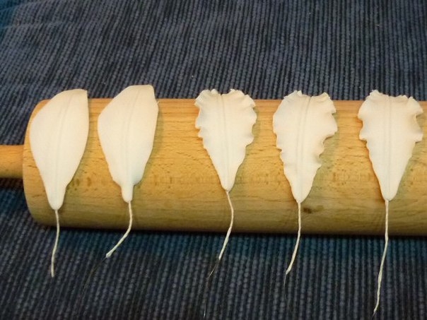 Затем скалкой раскатывается в пласт мастика, из которой аккуратно вырезаются лепестки - 6 штук на одну лилию.