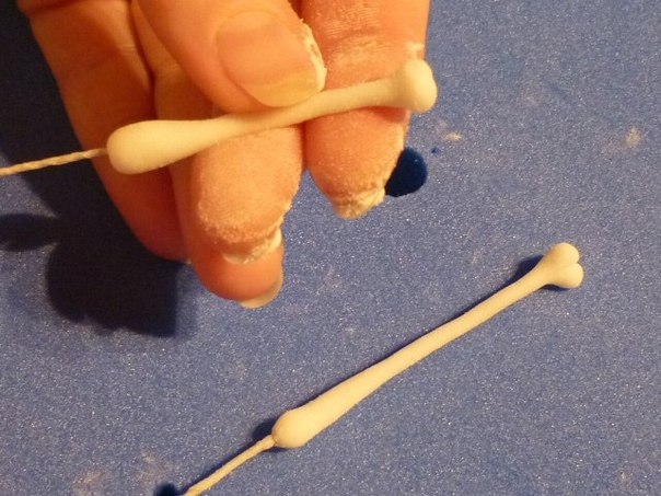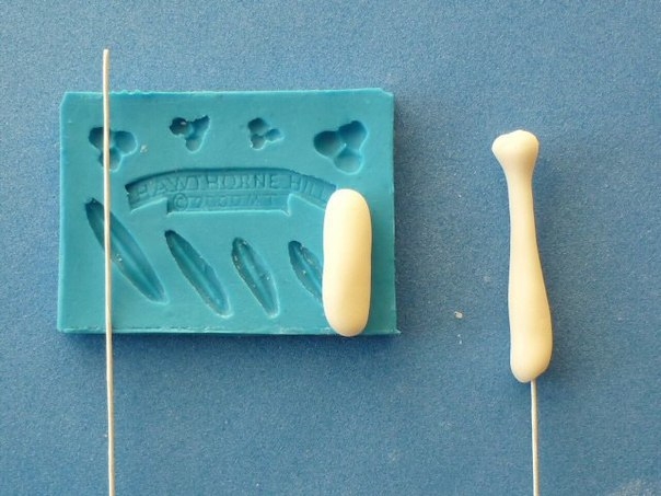 Берется проволока длиной около 8 см и обматывается тонко раскаченной полоской из мастики - получится пестик.
