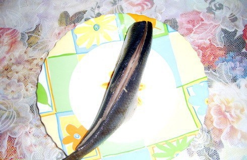 2. Затем ножом проведём вдоль хребта и вытащим верхний плавник.