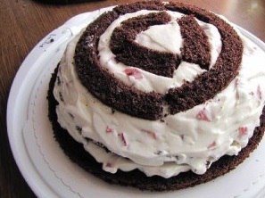 Шаг 8. Осталось только распределить по бокам торта разрезанный на 12 частей пласт бисквита.
