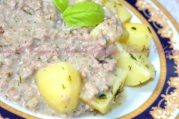 На тарелку выложить картофель и сверху мясную подливу. Вкусное и простое блюдо готово.
