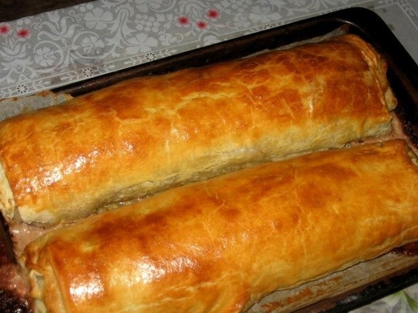 Пирог очень сытный, с тонкой корочкой теста. Одна начинка!