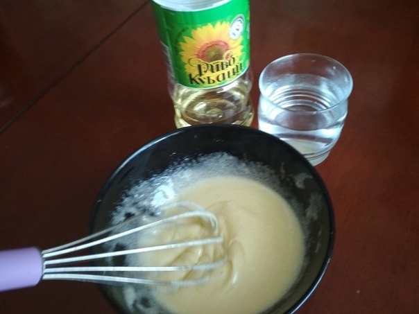2. Яйца разделить на белки и желтки. Желтки взбить с половиной сахара. Добавить масло и воду. Белки взбить в крутую пену. Соединить с желтками. Взбитые яйца смешать с мучной смесью.