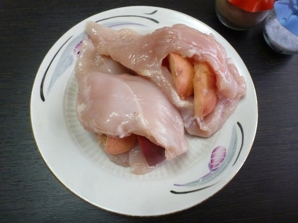 1. Куриные грудки помыть, обсушить. В толстой части сделать разрез-карман. Старайтесь не прорезать мясо насквозь. Посолить снаружи и внутри.