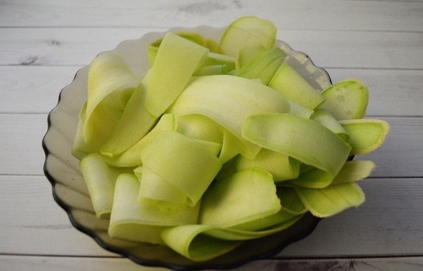 4. Кабачок с помощью овощерезки нарезать слайсами.