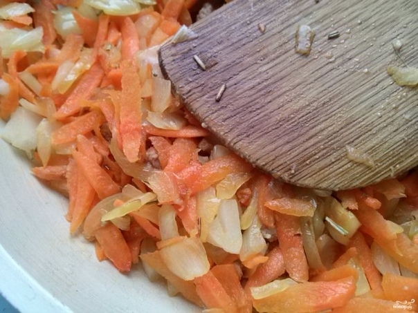 Натрите морковь на крупной терке, порежьте мелко лук. Разогрейте масло в сковороде с сухим розмарином. Обжарьте овощи до мягкости.
