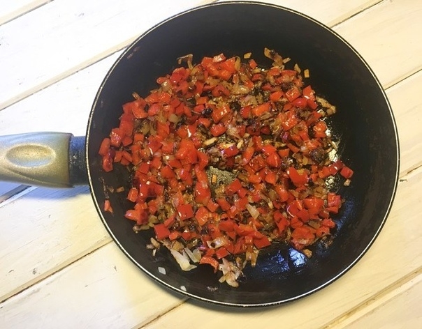 1. Лук и перец нарезать мелким кубиком, обжарить до готовности.