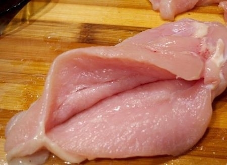 Куриное филе моем, делаем надрез в виде "карманчика".