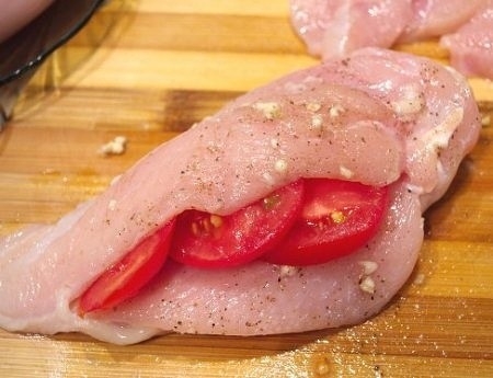 Запеченная куриная грудка с помидорами и чесноком