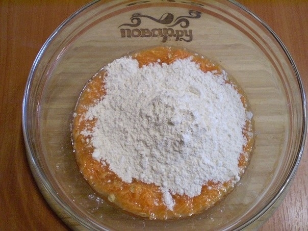 Добавьте муку, смешанную с разрыхлителем. Его можно заменить на соду с уксусом.