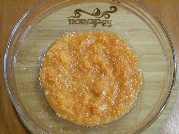 Очистите тыкву от кожуры и внутренних волокон. Натрите на мелкой терке.
