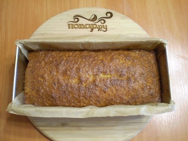 Форму для выпечки смажьте маслом или застелите промасленной бумагой. Тесто перелейте в форму и отправьте в разогретую духовку на 40 минут. Выпекайте при 180 градусах.