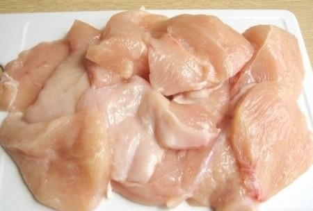 Каждое филе разрезаем на две половинки, поперёк куска.