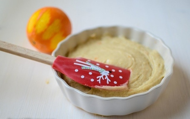 1. Йогурт выложить в миску. Добавить муку, сахар, масло, яйцо, разрыхлитель, цедру апельсина. Замесить тесто.