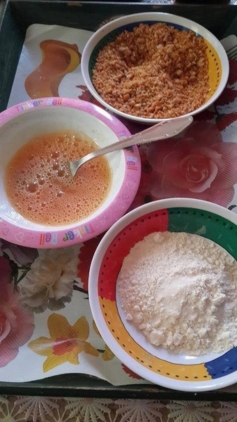 Панировка у меня простая - мука, яйцо, сухарные крошки со сладкой паприкой.