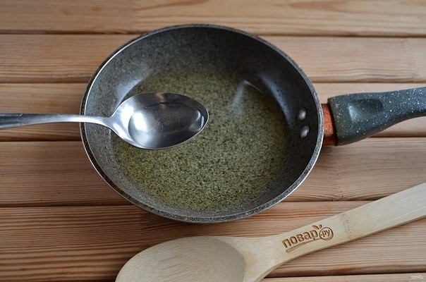 7. Убираем лук из сковороды. Убираем масло с огня и добавляем уксус.