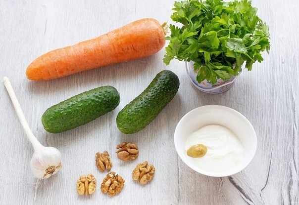 Полезная и сочная пикантная закуска из огурцов с добавлением грецких орехов! Отлично будет смотреться на праздничном столе и приятно удивит гостей! Готовить довольно просто. Угощайтесь!