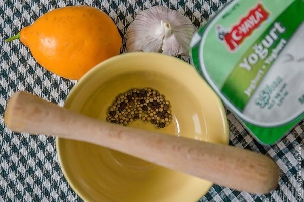 Замариную. Она уже готова, потому мариновать можно всего часик, если возьмете сырое мясо, соответственно, и время увеличивайте до 3-4 часов. Масло, чеснок, куркума, паприка.
