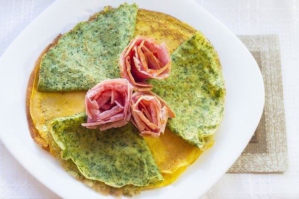 Шпинат измельчить в блендере, добавить порезанный укроп, влить часть теста и перемешать.