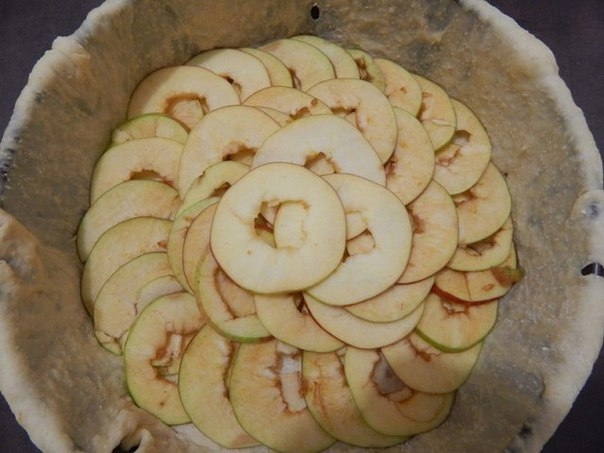 На тесто выложить нарезанные кружками яблоки.