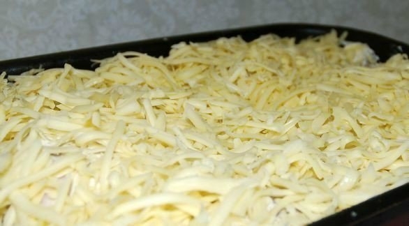 Сыр твердых сортов предварительно натереть на крупной терке.
