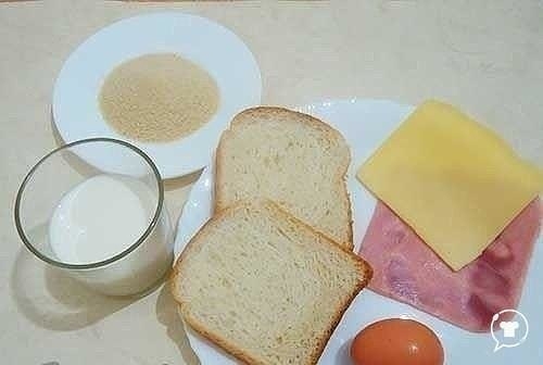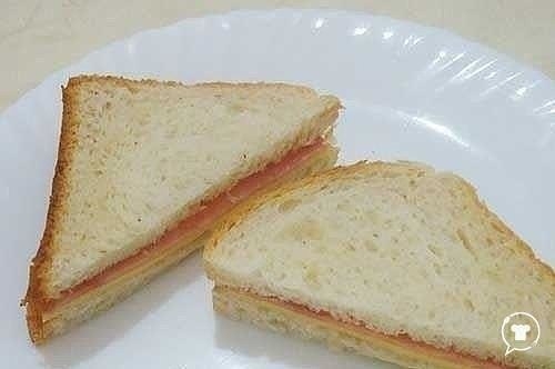 4. На один кусочек хлеба положить сыр и ветчину, накрыть другим кусочком хлеба.
