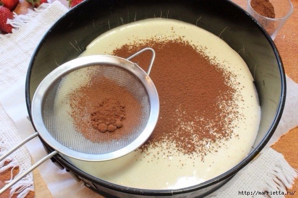 С помощью мелкого сита просеиваем какао-порошок, заполняя все пространство без пробелов.