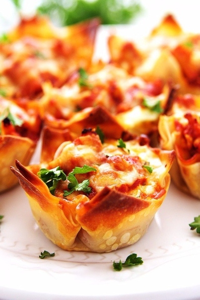 В смазанные сливочным маслом формы для кексов укладываем листы лазаньи, подходящие по размеру под форму.
